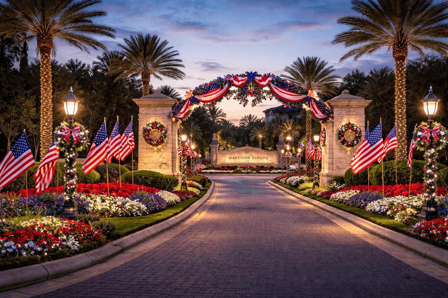 Glade Hill porches book Christmas garland heaviest, with Easter and Mother's Day florals anchoring spring.